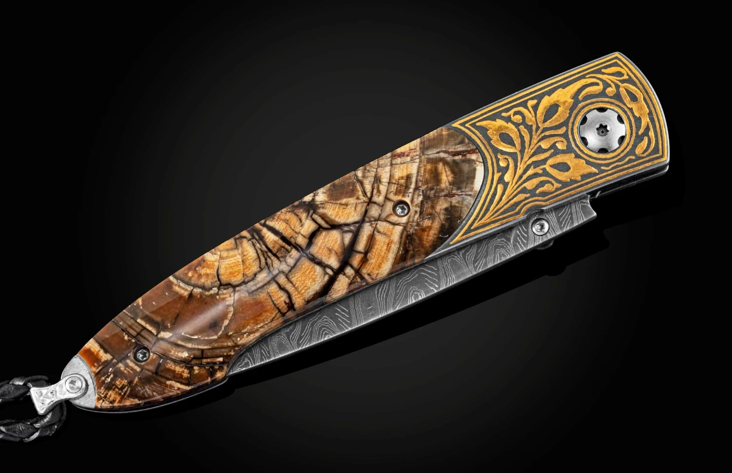 The Lancet ‘Age Old’ features a beautiful frame in 24K gold koftgari (the ancient Indian art of inlaying gold in tool steel), inlaid with the ring-cut of a 10,000 year-old fossil Woolly Mammoth tusk. The blade is hand-forged ‘Hornets Nest’ damascus by Mike Norris; the one-hand button lock and the thumb stud are set with white topaz gemstones. Sleek, elegant, refined, and comfortable in the hand and to the eye, the Lancet defines the essential gentleman’s folder in the modern world. The ‘Age Old’ features some of the exotic materials, artistry, and hand-forged metals that are the hallmark of William Henry’s collections; a stunning personality statement to be used and worn for a lifetime, before handing it down to another generation.