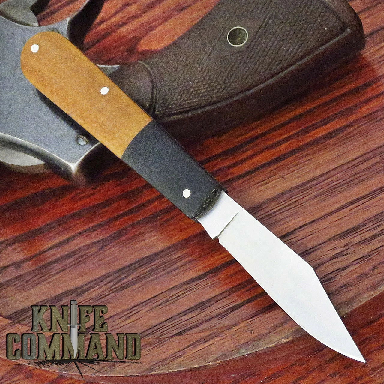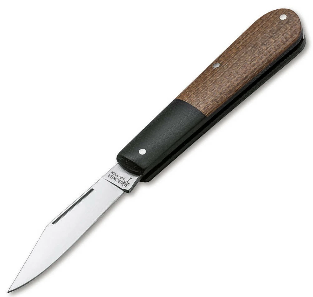 This 110943 Barlow folder is 5-7/8″ open length, 2-1/2″ blade, 3-1/4″ closed. The clip-point Barlow blade is satin finished N690 Stainless steel. This is a traditional slip-joint Barlow design with nail-nick opening. The handles are Black Canvas Integral body with Burlap Canvas Micarta scales.