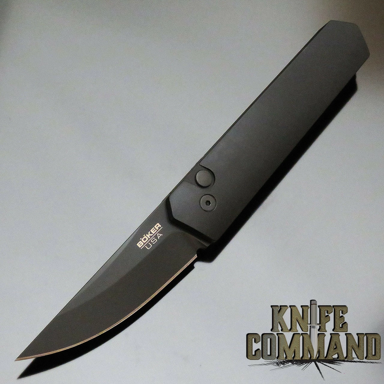 The Lucas Burnley Kwaiken Compact Automatic knife is a smaller version of the famous Kwaiken Auto. It is designed by Lucas Burnley and manufactured by Boker and Pro-Tech knives. This simple yet effective designed knife packs the punch of Pro-Tech’s automatic knife technology.