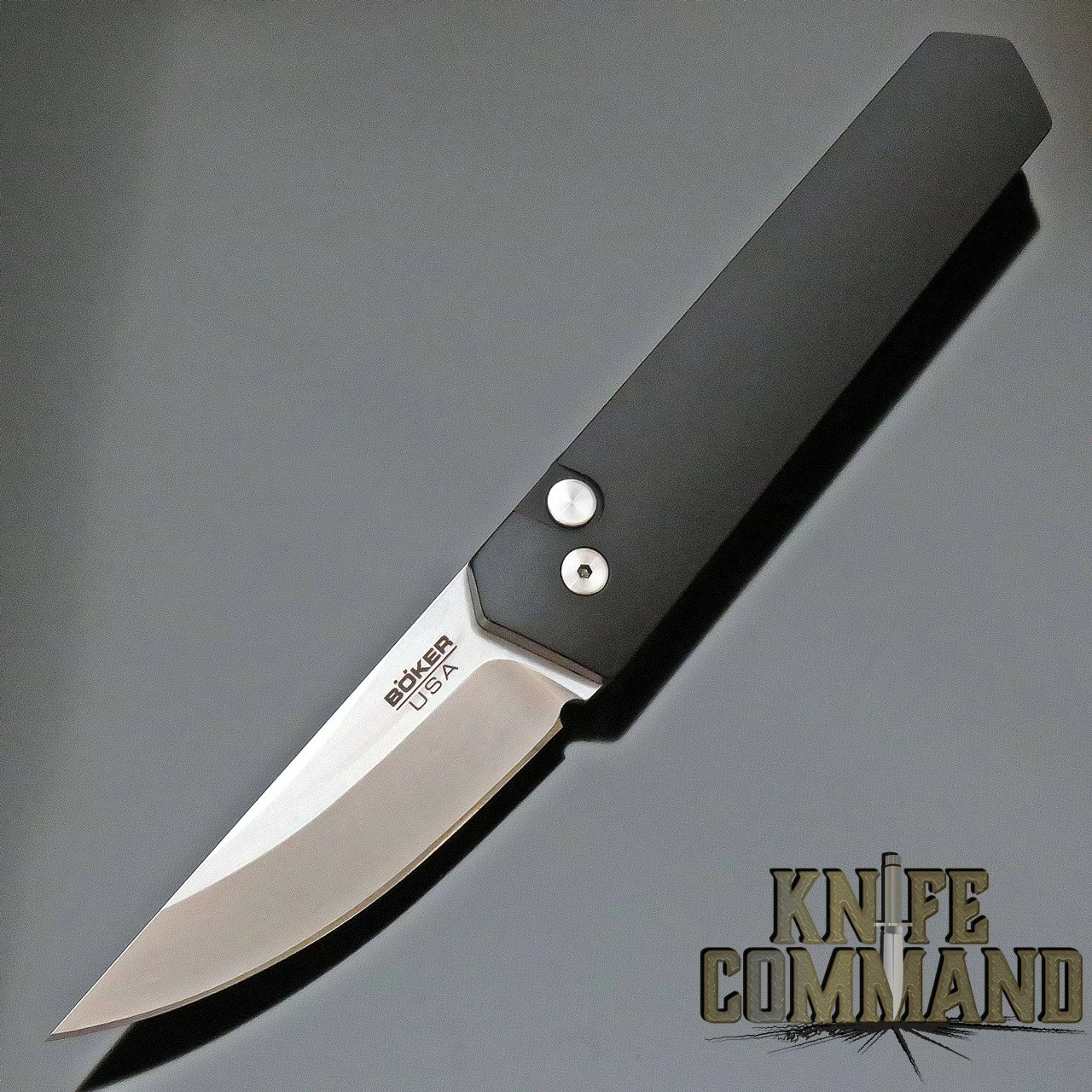 The Lucas Burnley Kwaiken Compact Automatic knife is a smaller version of the famous Kwaiken Auto. It is designed by Lucas Burnley and manufactured by Boker and Pro-Tech knives. This simple yet effective designed knife packs the punch of Pro-Tech’s automatic knife technology.
