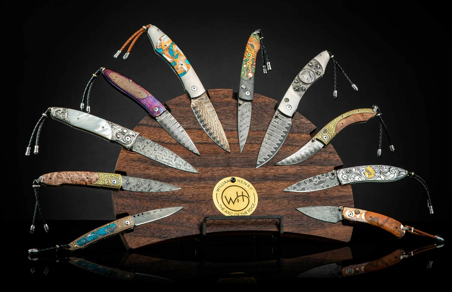 Display your collection for all to see! This beautiful walnut display rack mounts easily on your wall, or on the included display stand. Highlight your 10 ‘most favorite’ William Henry knives with style.