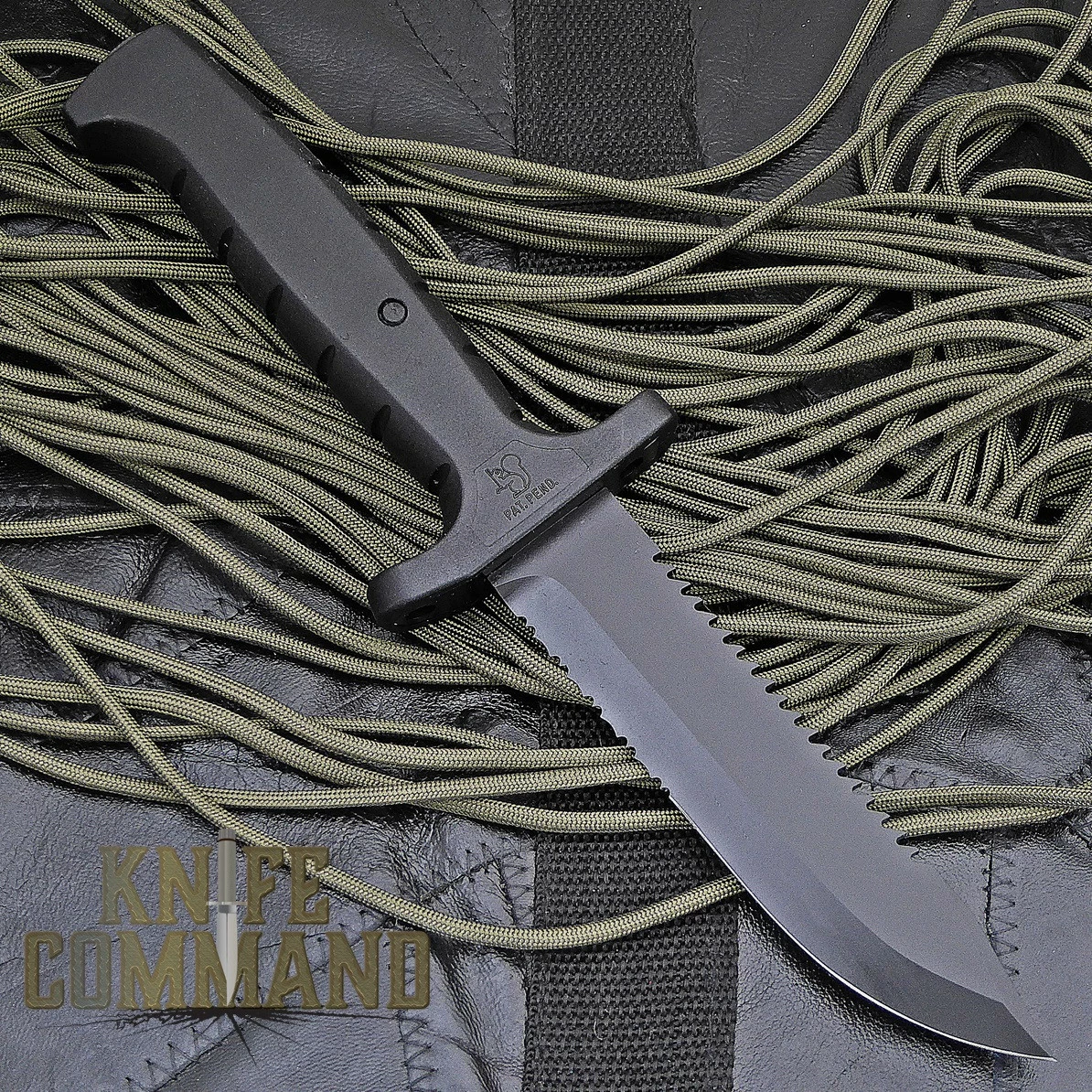 The Aviator III knife is approximately 10-5/8″ in overall length with a 5-1/4″ blade. The black KalGard coated blade is forged from corrosion free 1.4110 steel (HRC 56). This is a bowie style design with a fine cutting edge along with 1-3/4″ of laser cut serrations. The blade spine has very aggressive saw teeth. Each knife is individually serial numbered. The maintenance free, ergonomically designed black all weather handle grip is made to MIL specifications. It has a glass-fiber reinforced polyamide handle. The handle end has a hardened carbide glass breaker.