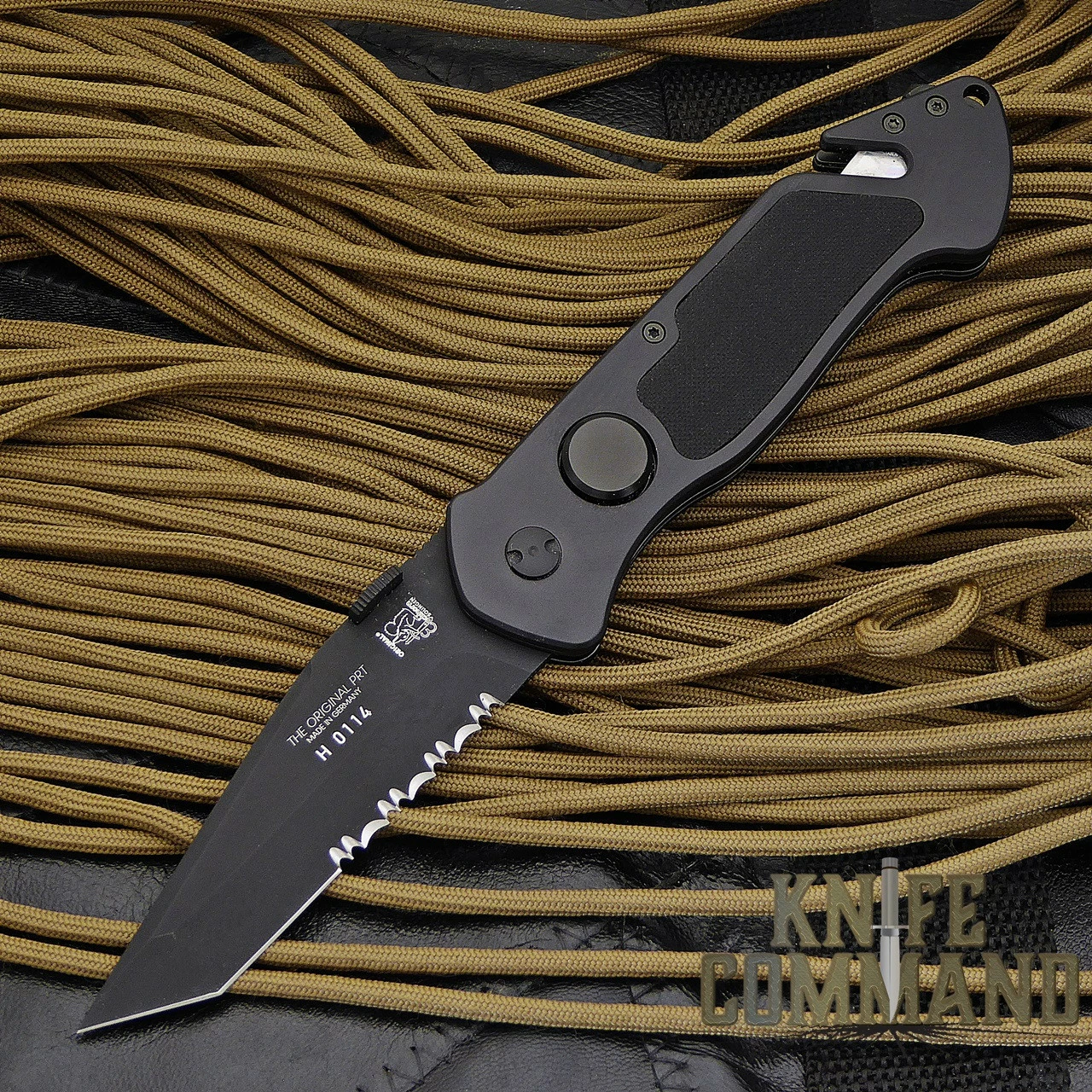 The all black, Tanto point, Eickhorn Solingen PRT-X tactical rescue knife has an aggressive looking blade that is a favorite among law enforcement and the military. Made in Solingen, Germany, this makes a great duty knife.