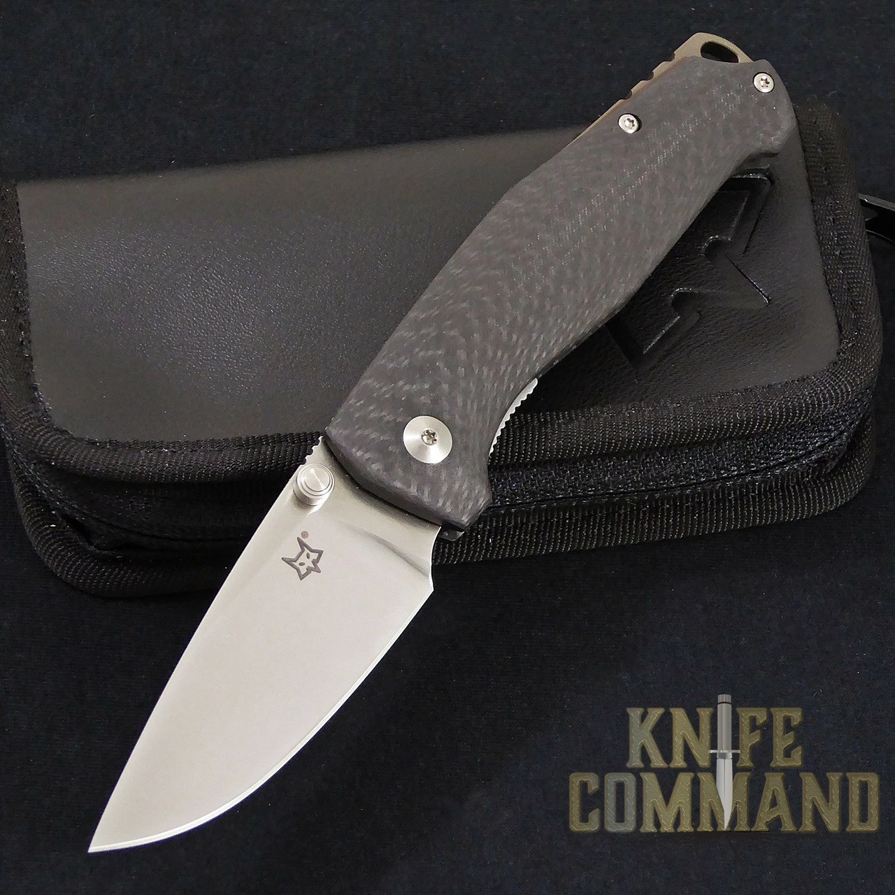 This knife is especially suited for every day carry. It measures 7 open length, 4″ closed length, and weighs only 3.3 oz. The 3.5mm thick, satin finished,drop-point blade is 2.95″ long and is forged from Elmax stainless steel with a 59-61 Rockwell hardness. Twin thumbstuds allow for easy one-hand opening. The handle is Carbon Fiber with a stainless steel liner lock design. The Tur features an exposed spacer lanyard hole and a Titanium pocket clip. Comes complete, brand new in original Fox box with Fox black zippered leather pouch.