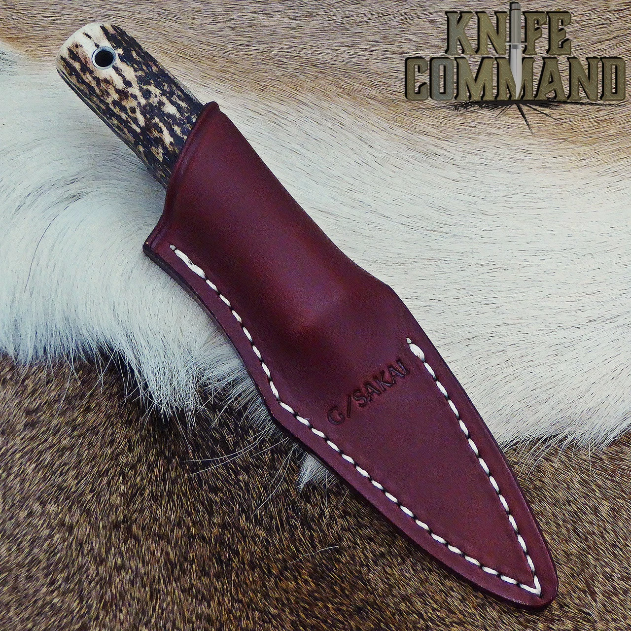 The G Sakai Camp Stag Mini knife is one of those fixed blades that you will always want to carry and use. It is 7″ in overall length with a 3″ blade. The 440 stainless steel blade has a drop-point design. It is hollow ground on one side and is flat on the other. The genuine Stag handle has a stainless steel blade plate at the tang and a lined lanyard hole.