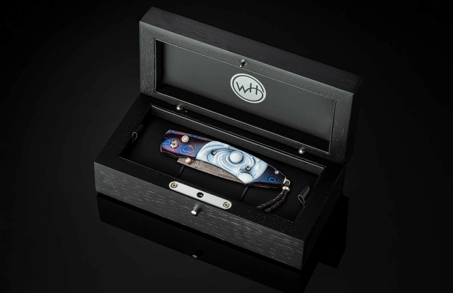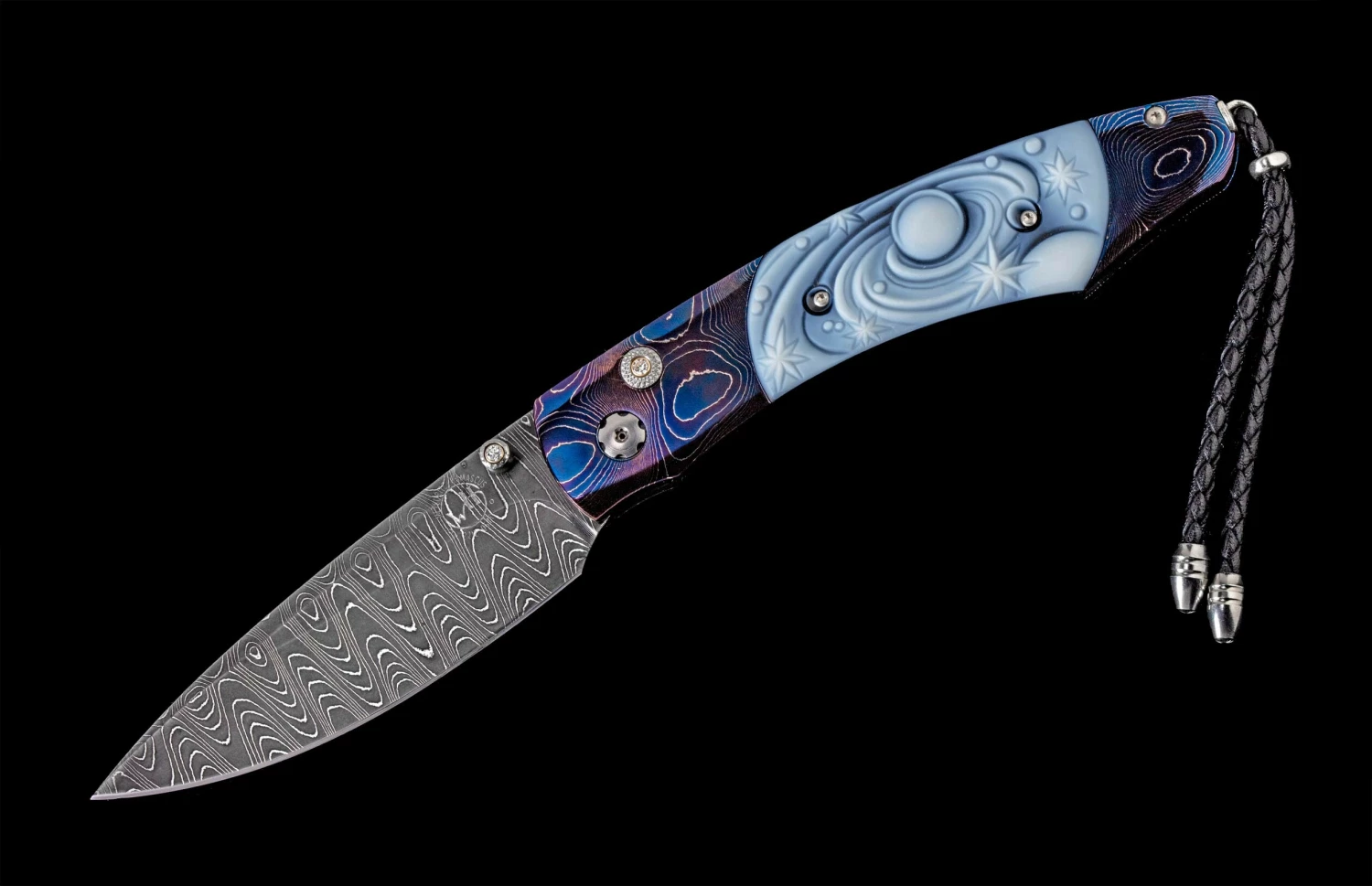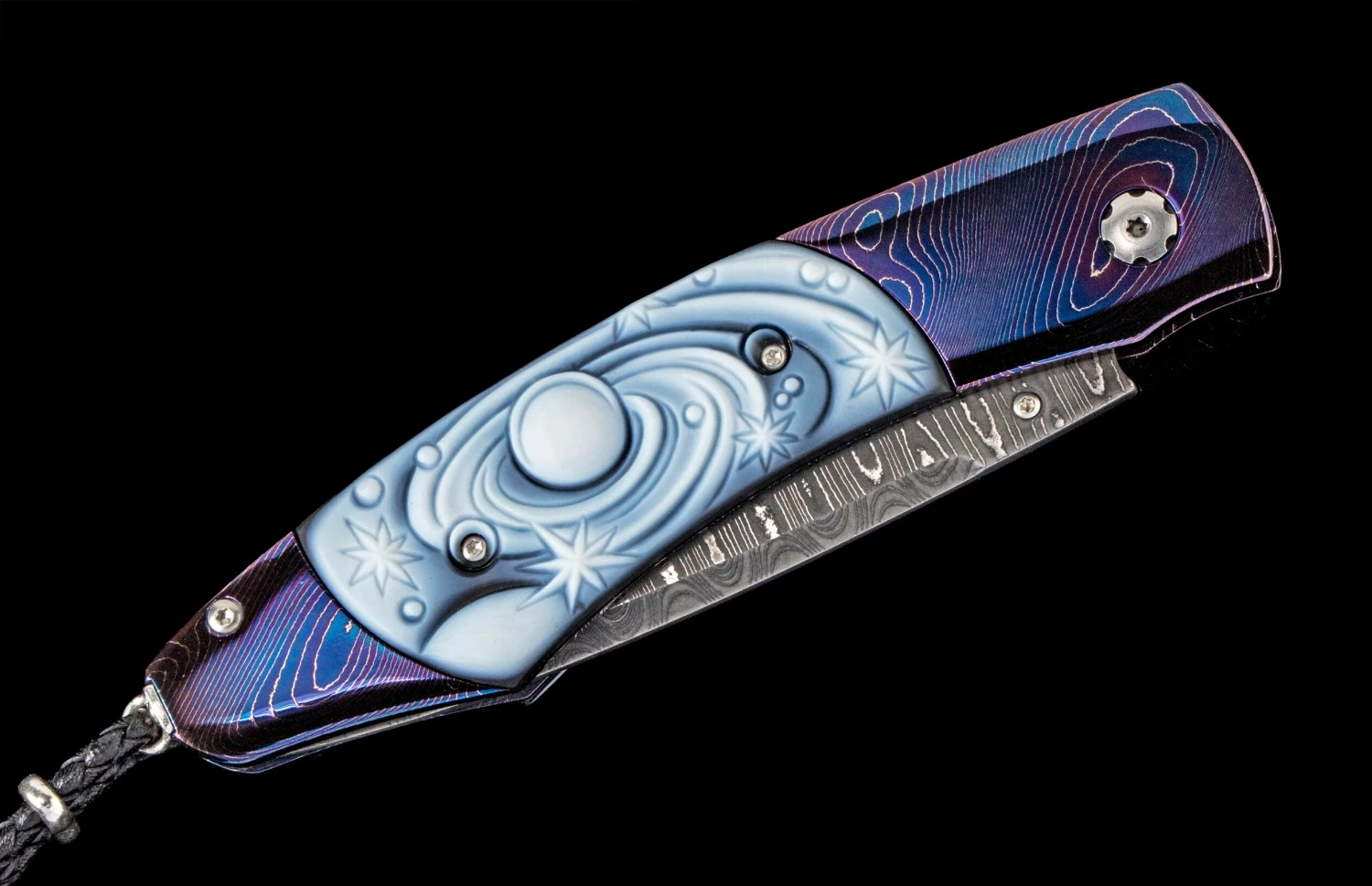 A remarkable design that gives you an instrument with a full-size secure grip, and a versatile deep-belly blade, the Spearpoint epitomizes William Henry’s core philosophy – that superlative function deserves to be elevated to superlative art. The ‘Galaxy’ features the artistry, hi-tech, and hand-forged metals that are the hallmark of William Henry’s collections; a distinctive personality statement to be worn and used for a lifetime.