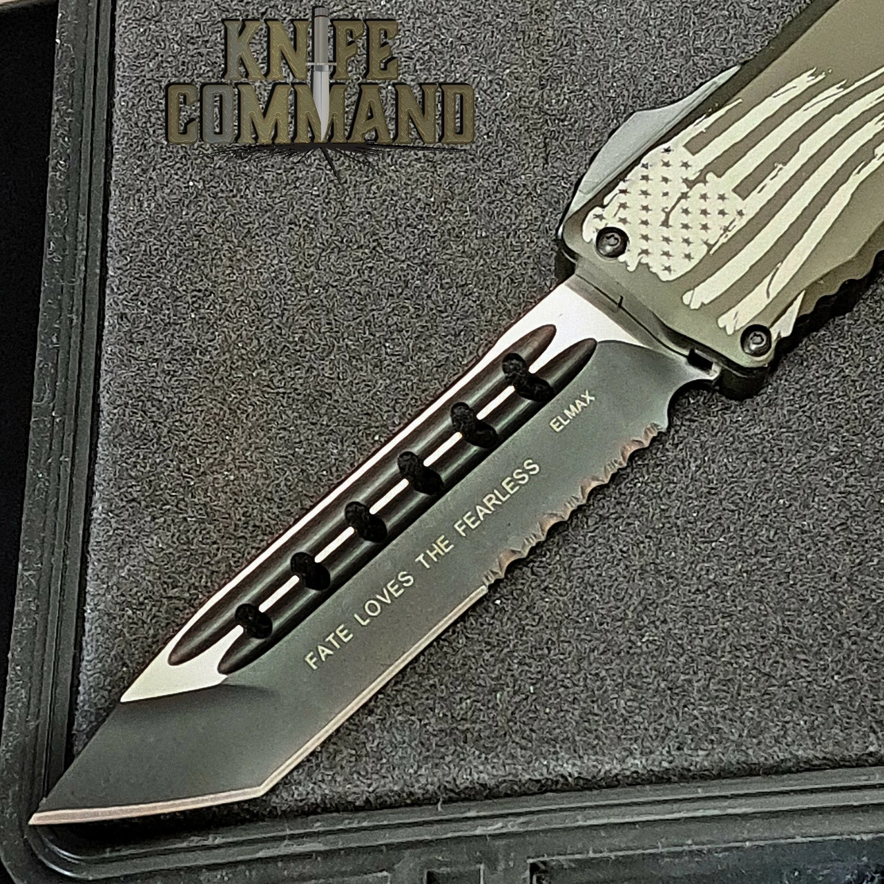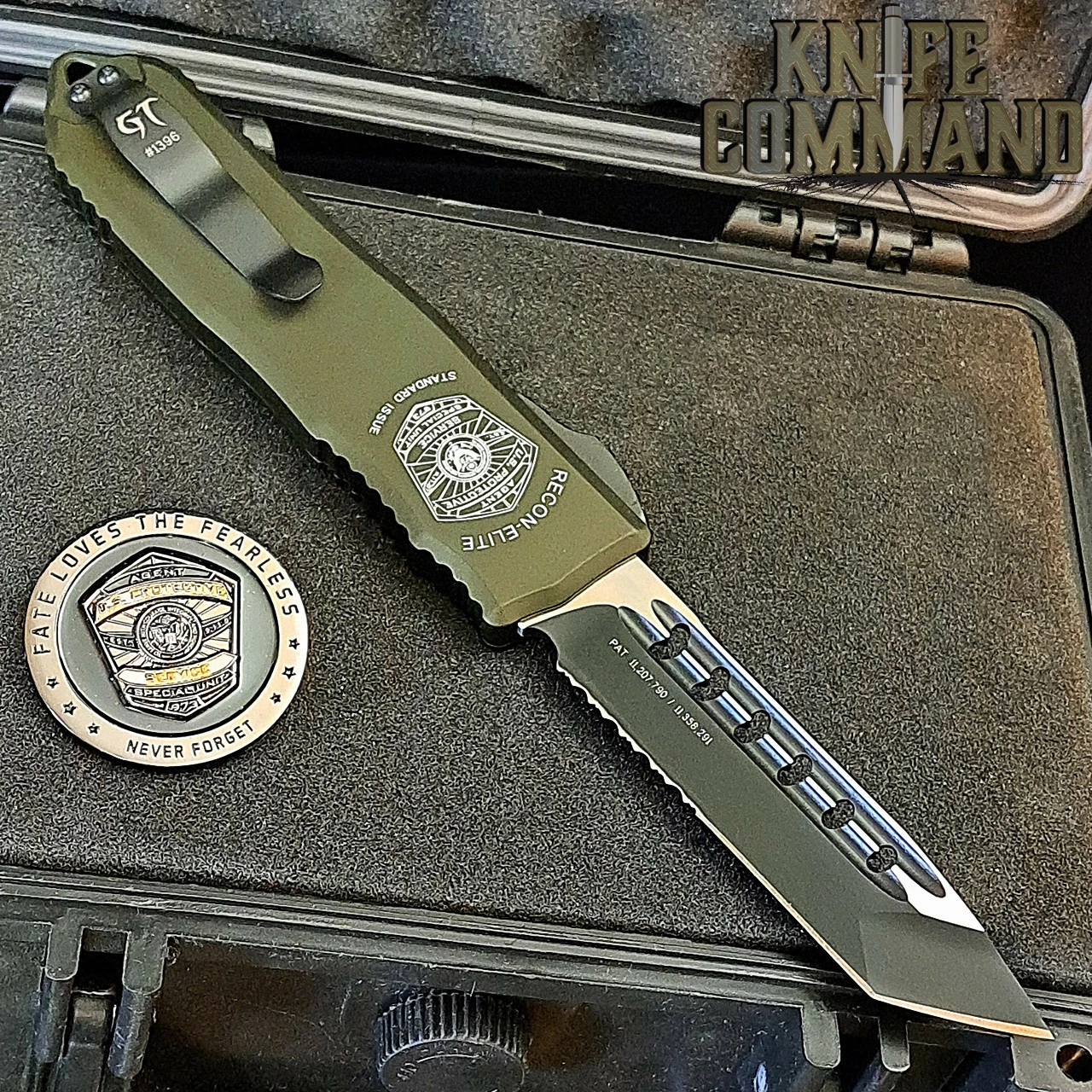 This Recon-Elite features an American flag on one side and the U.S. Protective Service shield on the other. 100% Made in the USA and is individually serial numbered. Knife comes in a large, protective, padded, lockable case with papers, sticker, and challenge coin. Knife Command continues to bring you the best.
