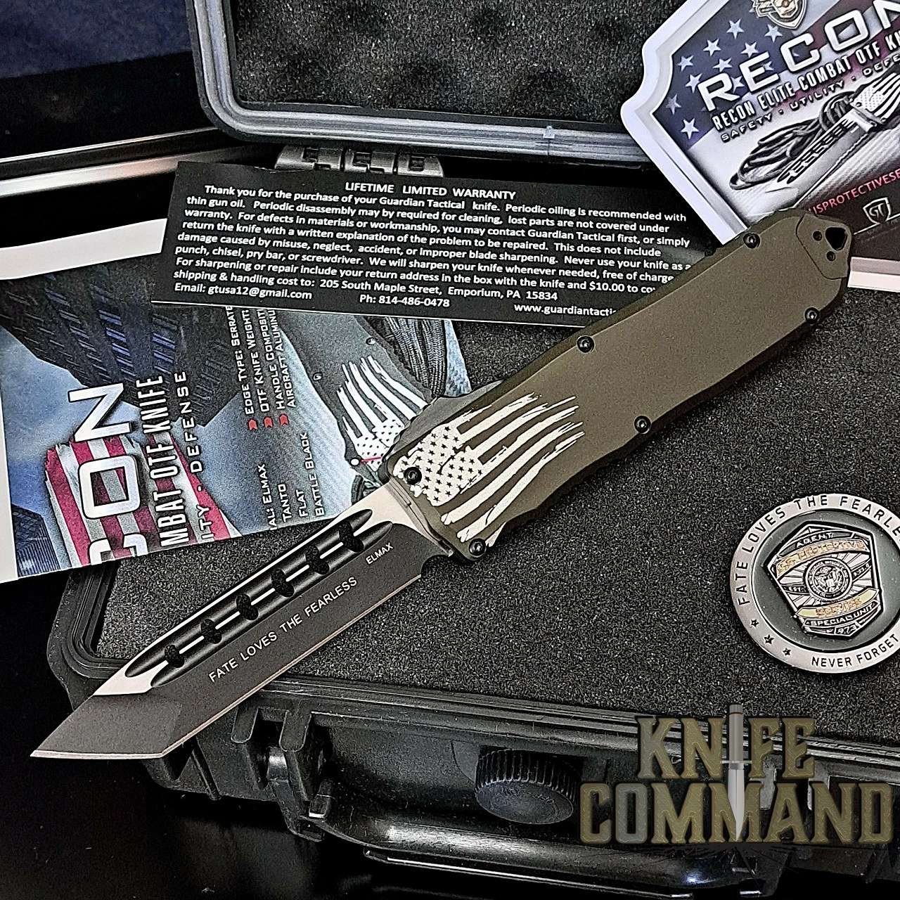 This Recon-Elite features an American flag on one side and the U.S. Protective Service shield on the other.  100% Made in the USA and is individually serial numbered. Knife comes in a large, protective, padded, lockable case with papers, sticker, and challenge coin. Knife Command continues to bring you the best.