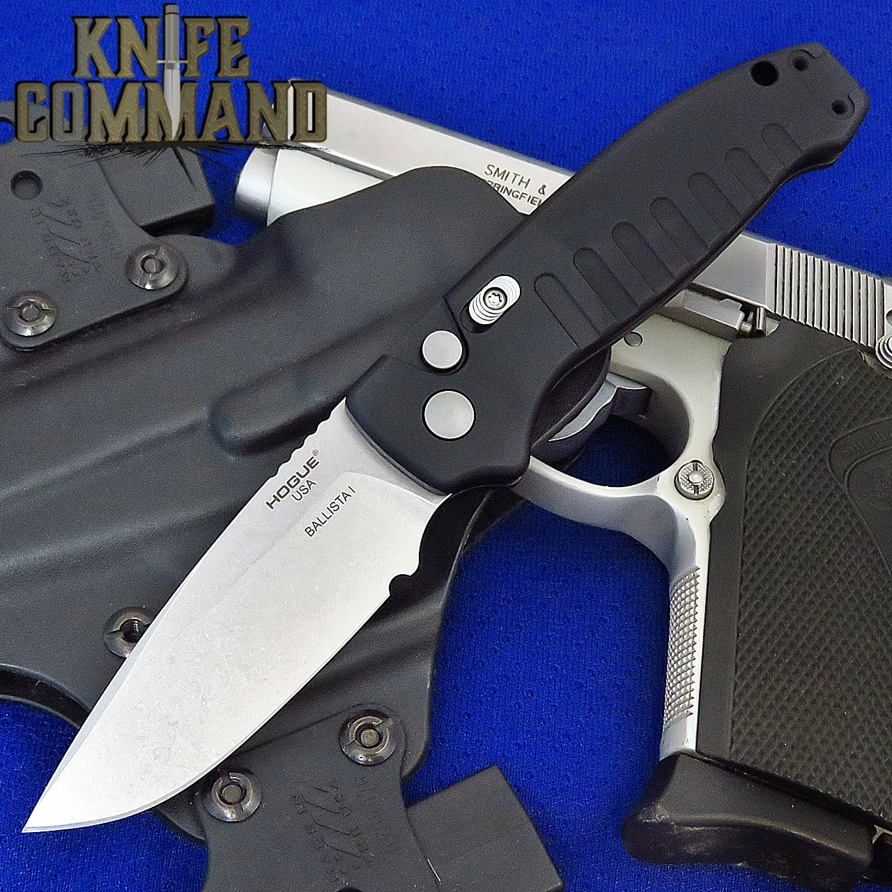 Hogue Knives are now issued to all branches of the U.S. Military. Hogue is also proud to be the exclusive manufacturer of Heckler & Koch and SIG SAUER knives. This Ballista I is a truly functional EDC automatic knife. It just checks so many boxes.
