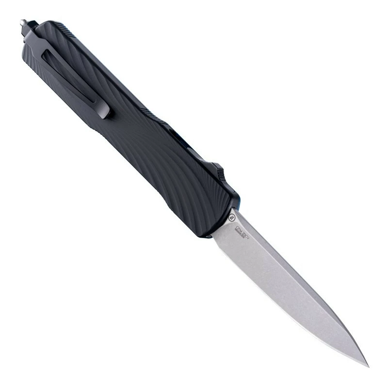 The Counterstrike is Hogue’s newest out the front automatic with no shortage of intention throughout its design. The streamlined frame is built upon 6061–T6 anodized aluminum with a Black G-Mascus cover, and black hardware. The double-action trigger fires repeatedly, deploying an impressive drop-point blade, comprised of CPM 20CV, cryogenically heat treated at 59-61 HRC and with a Stone Tumbled finish.