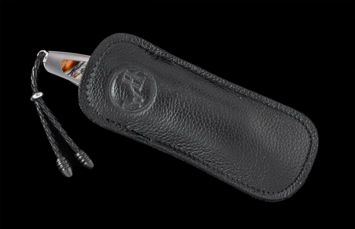 The knife is shipped in an elegant wood presentation box, and it comes with a pocket clipcase made from soft, high-grade leather, with an integrated stainless steel pocket clip