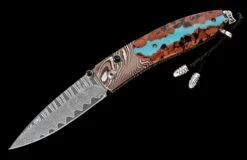 Meteoric Hand-engraved Pocketknife With Meteorite And Gold Inlays, And Meteorite Damascus Blade