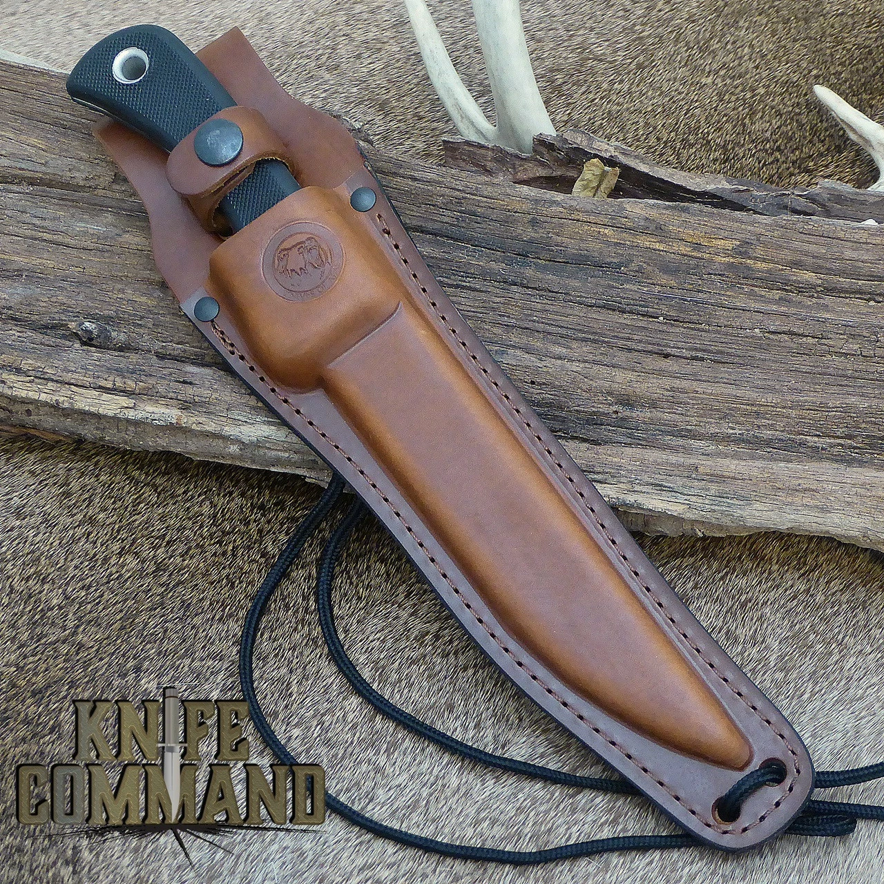 The Magnum Boar Hunter is carried in it’s custom leather belt sheath with leg ties.