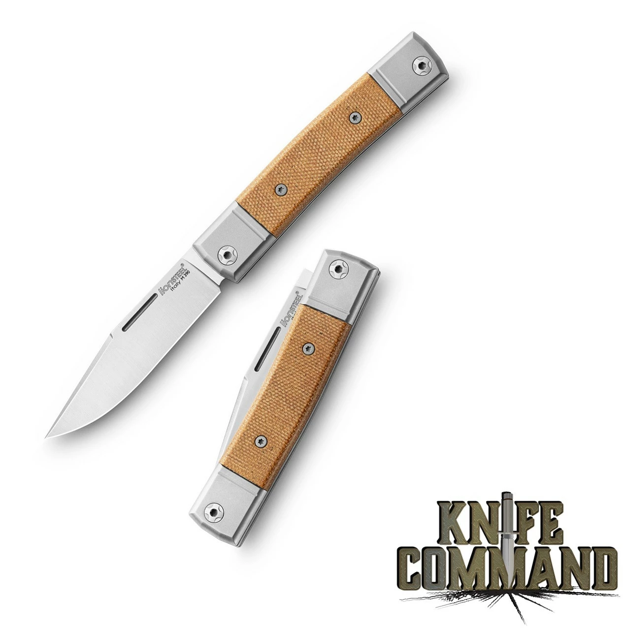 The Best Man knife measures 6.69″ open length, 4-1/2″ closed length, and weighs only 2.4 oz. The satin finished blade is 2.8″ long and is forged from Bohler M390 Microclean stainless steel. The super steel clip-point blade has a fine cutting edge. This is a traditional slip-joint pocket folder. The handle has Natural Canvas Micarta scales with 6AI4V titanium bolsters.