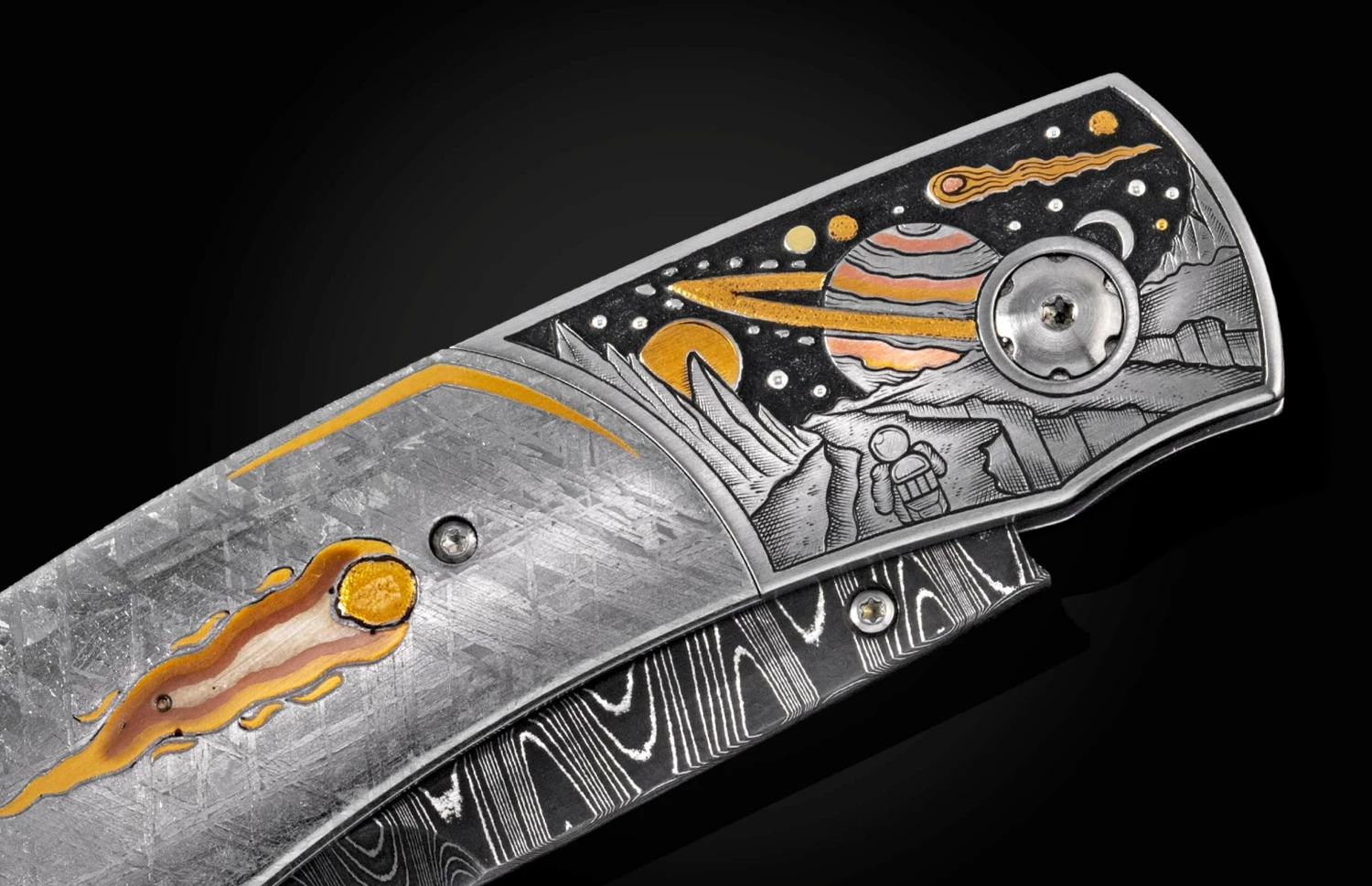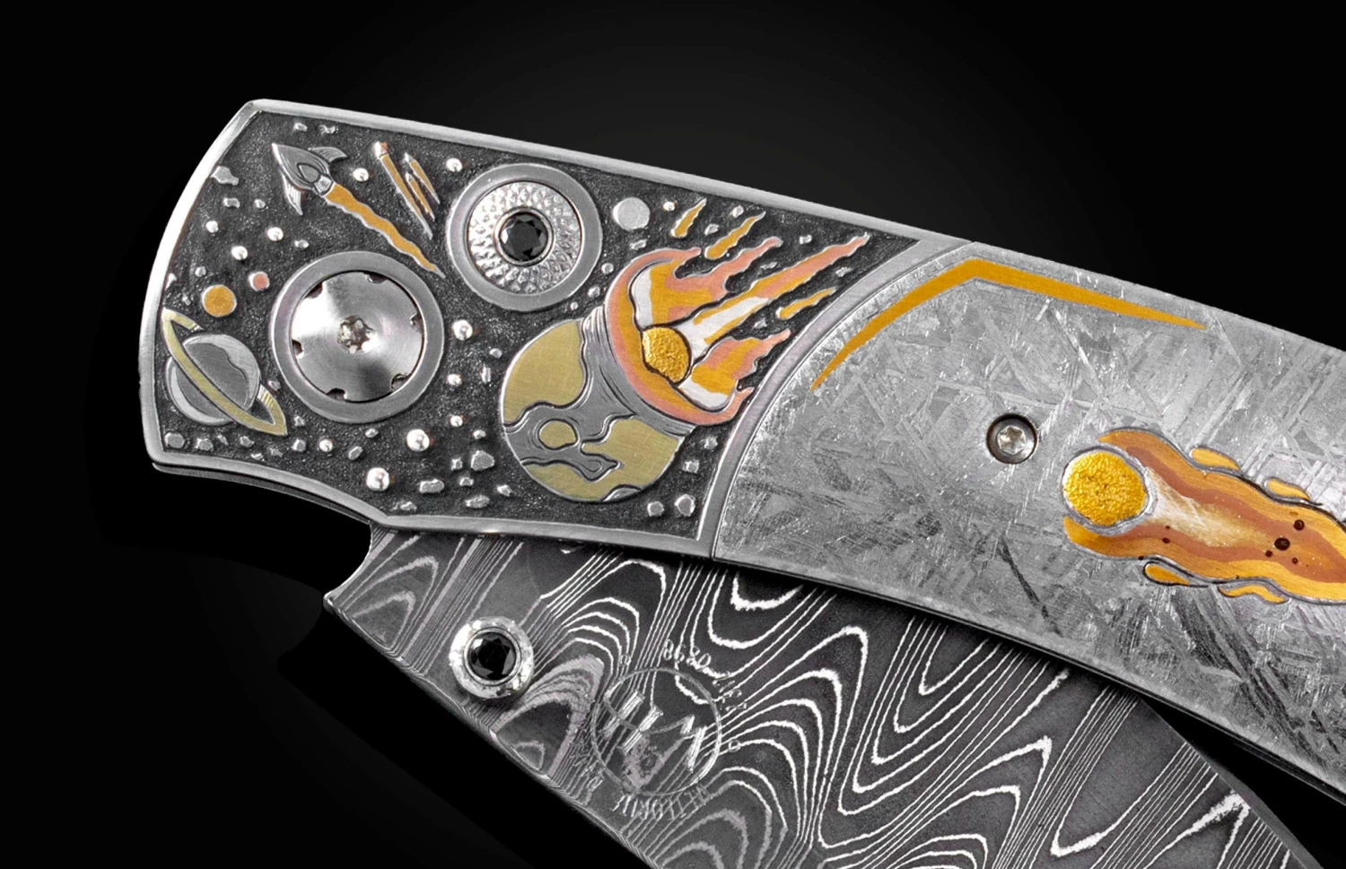 A remarkable design with a full-size secure grip and versatile deep-belly blade, the Spearpoint epitomizes William Henry’s core philosophy: superlative function deserves to be elevated to superlative art. The ‘Meteoric’ features some of the exotic materials that are the hallmark of William Henry’s collections; a timeless heirloom to be proudly worn and used for a lifetime.
