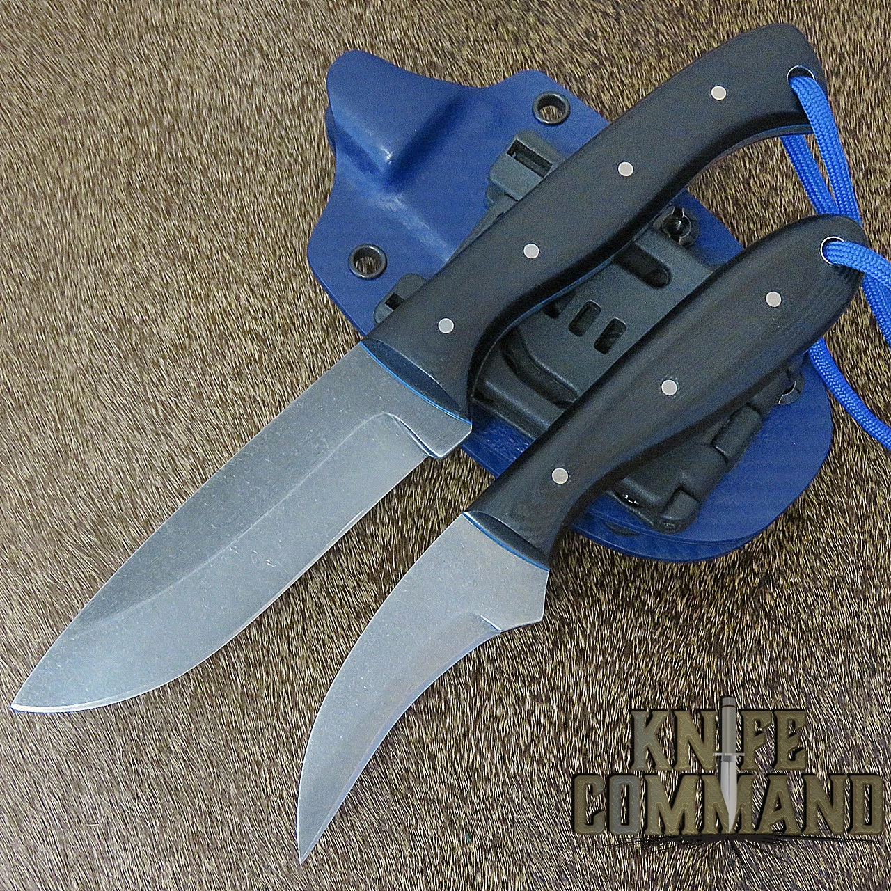 Be the first to review “Paddy Smyth Knives Prototype Custom Stalker’s Claw/ Pro Stalker Full Stalking Combo Hunting Knives, Black G-10 Blue Sheath Blueline” Cancel reply