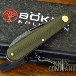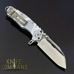 The Force One measures 11-3/8″ open length, 7-1/2″ closed length, and weighs 12.5 oz. The 6mm thick, two-tone satin finished blade is 5-5/8″ long and is forged from Niolox stainless steel. Because of the massive size of this knife, it is manual open only. The OCS (Open & Close Security System) locking system, developed and patented by Lionsteel, has created a knife that locks securely both when open and when closed. The size of the blade and the complexity of the overall system make this form of double locking a necessity. The Extra large all Hunter OD Green G-10 scales ride on 1.3mm thick stainless steel liners. The handle has jimping on top and bottom. The Pohl Force pocket clip is reversible for right or left hand carry and it comes with a braided paracord lanyard with LionSteel EOD bead. To top it off, it has a tungsten carbide glass breaker. The Force One is brand new in box, complete with a Certificate of Authenticity, Pohl Force sticker, rubber patch, and zippered Pohl Force pouch.