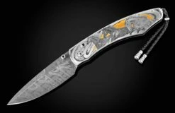 Yorick Sculpted Sterling Silver Pocketknife with Hand-forged Damascus Blade