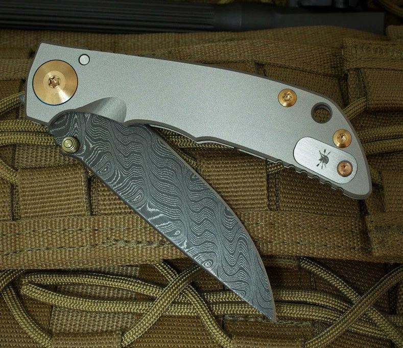 The Spartan Harsey Folder 3.25 “SHF 3.25” This is Spartan Blades latest folder collaboration with legendary knife maker, William “Bill” Harsey Jr. The SHF 3.25 is the knife many of you have been waiting for! A reliable 6AL4V titanium frame-lock knife with a 3.25” Chad Nichols Damascus blade. Easy to carry and comfortable in the hand; a truly exceptional gentleman’s (or ladies) folder. Constructed like its award winning big brother the SHF, the SHF 3.25 is made of 6AL-4V titanium with beautiful Bronze hardware. This medium sized folder has a reversible pocket clip and dual thumb studs allowing for left and right hand carry. If you are looking for a high quality and well designed folder this is one you should strongly consider!