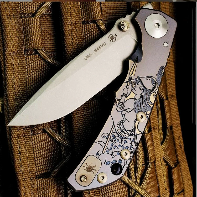 In the world of quality handcrafted knives, the name William Harsey speaks for itself! Spartan Blades is proud to offer our Special Edition Spartan Harsey Folder (SHF) knife with this awesome Spartan Babe artwork. This custom handcrafted folding knife is designed by William W. Harsey Jr., a prolific and highly accomplished knife maker. You simply won’t find a better folding knife out there!