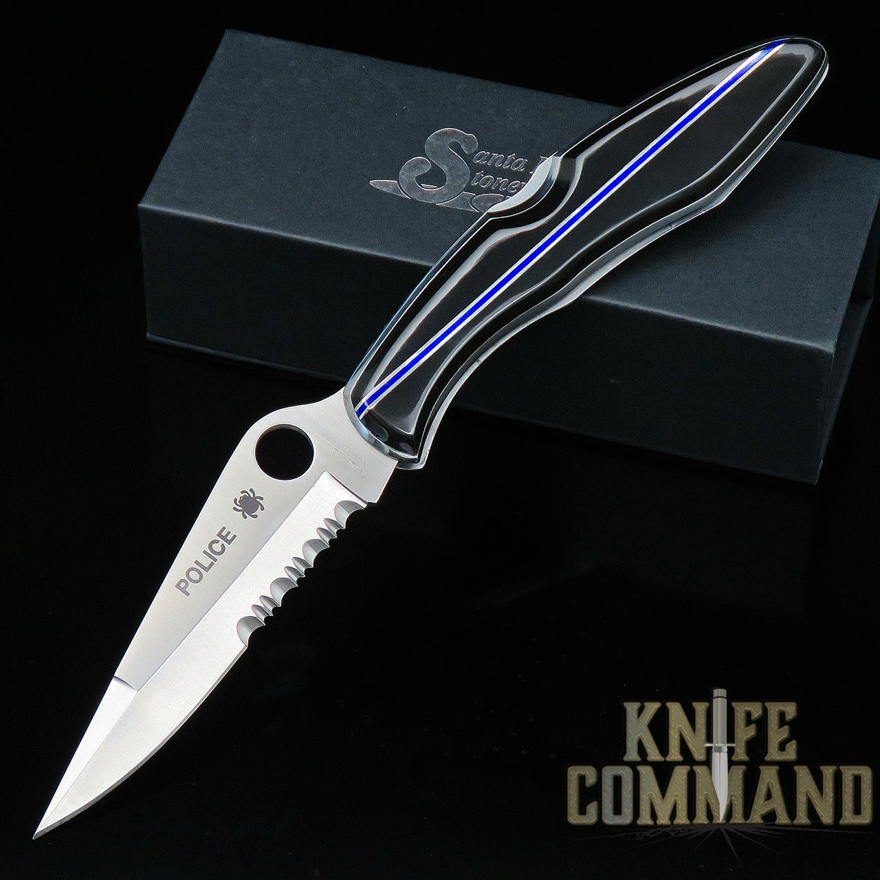 This beautiful knife is a perfect addition to many different collections. Whether your passion is Police, Law Enforcement, Spyderco knives, Santa Fe Stoneworks creations, custom knives, or just pieces of art, this knife will fit right in.