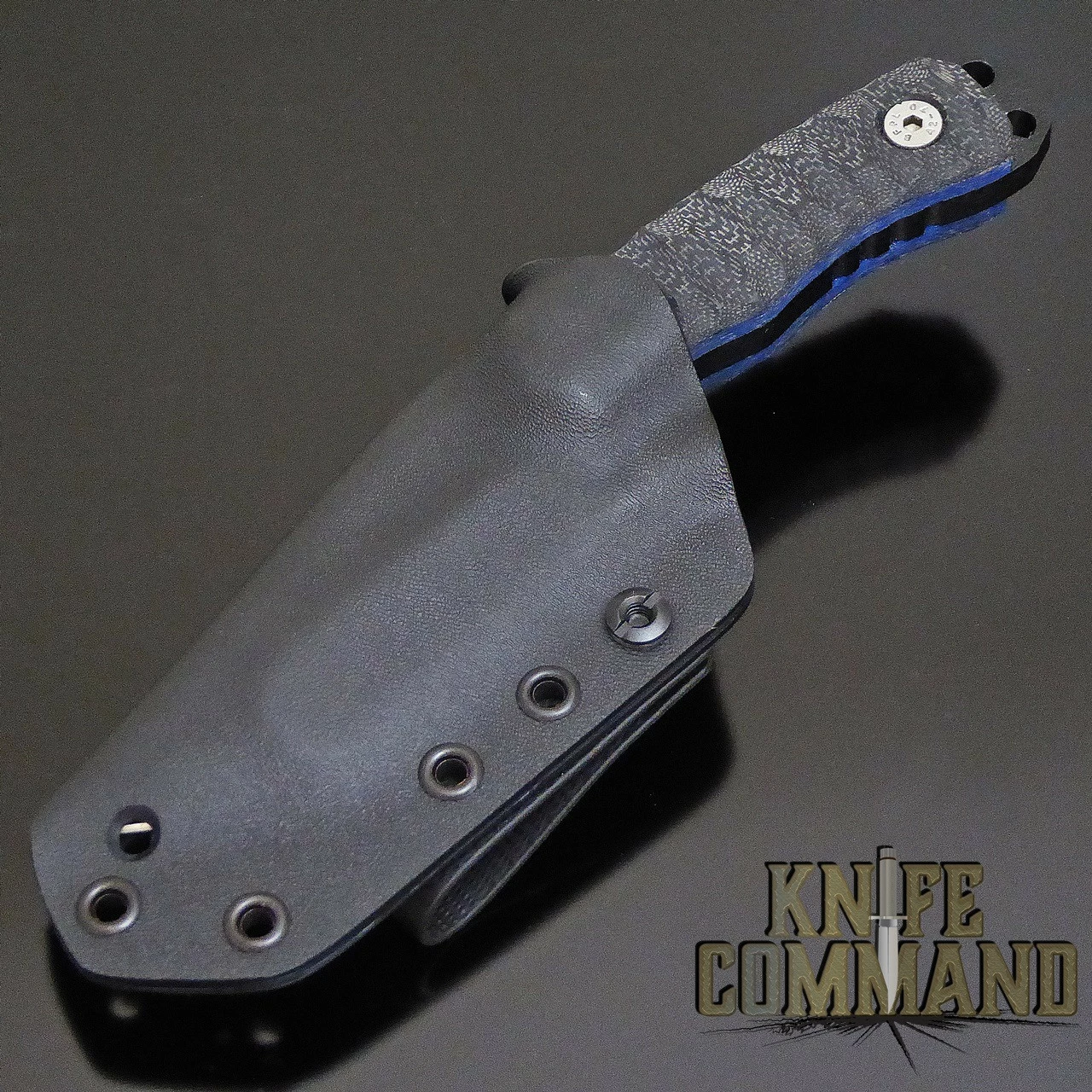 The KC Commander comes with a black Kydex sheath with a snap belt loop. The sheath holes are also sized to fit a Tek-Lok adapter which is also included. Carry inside or outside waistband.